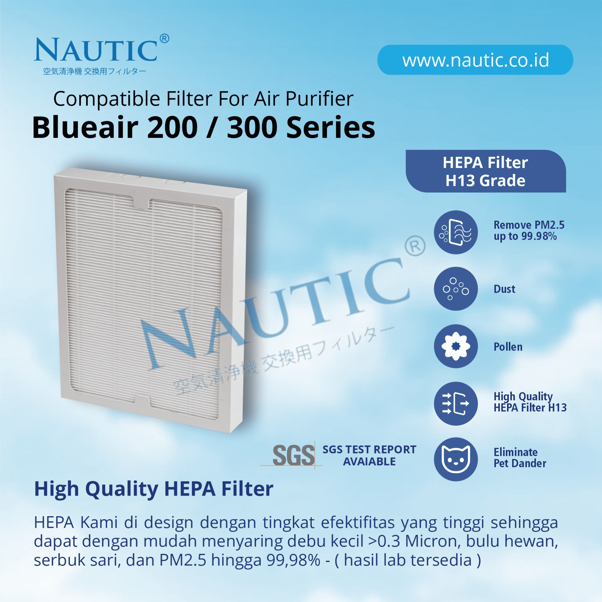 Filter Air Purifier MERK NAUTIC Kompatibel untuk Blueair 201 203 205 270i 280i 303 200/300 series